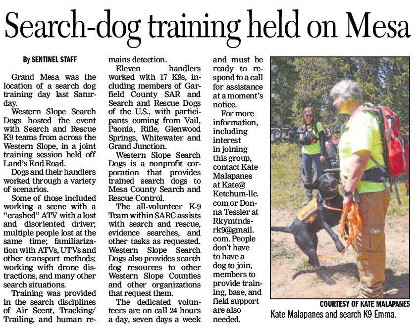 Kate and Donna’s September, 2021 training sessions were featured in Grand Junction’s local paper, The Daily Sentinel.