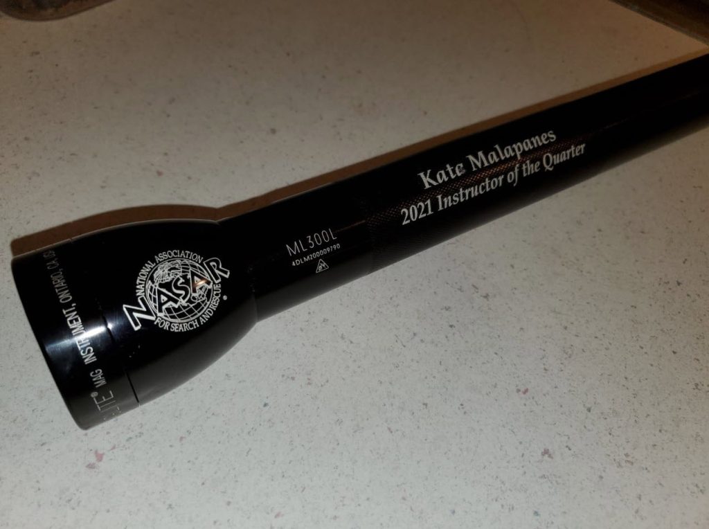 In addition to the certificates, Kate also received the NASAR honor of 2021 Instructor of the Quarter, awards in the form of a large Mag-Lite flashlight.