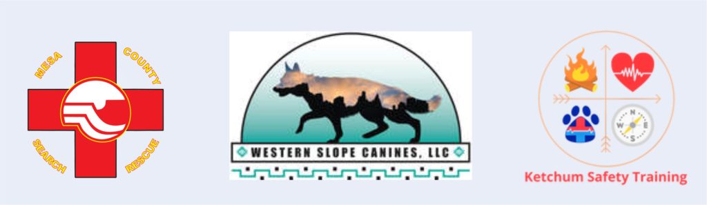 Both Kenai and Blackie were well-trained search rescue dogs and participated in many of Kate’s training, as well as being “staff” dogs for Ketchum Safety Training. In addition, Kate, Jim, and the dogs were active in the Mesa County Search and Rescue ATV and the Mesa County Search and Rescue Ground teams, and were also both members of the K9 Search and Rescue team based in Dolores, CO, and Western Slope Search Dogs.